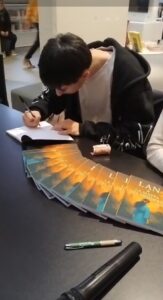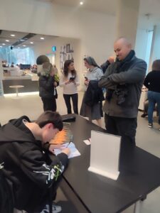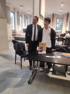 Danilo si presenta e con orgoglio mostra il suo prodotto dal titolo: “LAN & LA MAPPA DEL DESIDERIO”, un’avventura epica dal sapore orientale cinese, perché lui ama tutto della cultura cinese e studia questa lingua nei momenti liberi. Dal pubblico iniziano le domande: “Cosa ti ha portato a scrivere un libro, oggi, quando tutto e in particolare il mondo giovanile  punta sul digitale?” Danilo risponde con una naturalezza che stupisce, spiegando di credere fortemente che il libro, più di altre forme di comunicazione, crea relazione tra chi scrive e chi legge, trasmettendo emozioni e suscitando desideri che nella vita potranno diventare realtà, così come è successo a lui. Infatti da alcuni anni Danilo coltivava il desiderio e la passione di scrivere qualcosa di suo per condividerlo con gli amanti della lettura, e ci è riuscito! Importante aggiungere che lui ama anche la musica in particolare il k-pop, suonare la batteria e ballare breakdance; e da quest’ultima ha acquisito energia e determinazione oltre che scegliere il suo pseudonimo bboy Teckel. In passato ha praticato diversi sport  e “ognuno di essi, spiega,  mi ha lasciato qualcosa di unico che ha contribuito a formare la persona che sono oggi”.